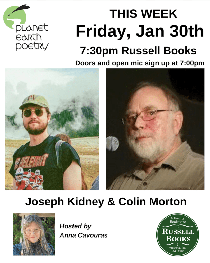 January 30th: Victoria, BC (Planet Earth Poetry, Russell Books, with Colin Morton)